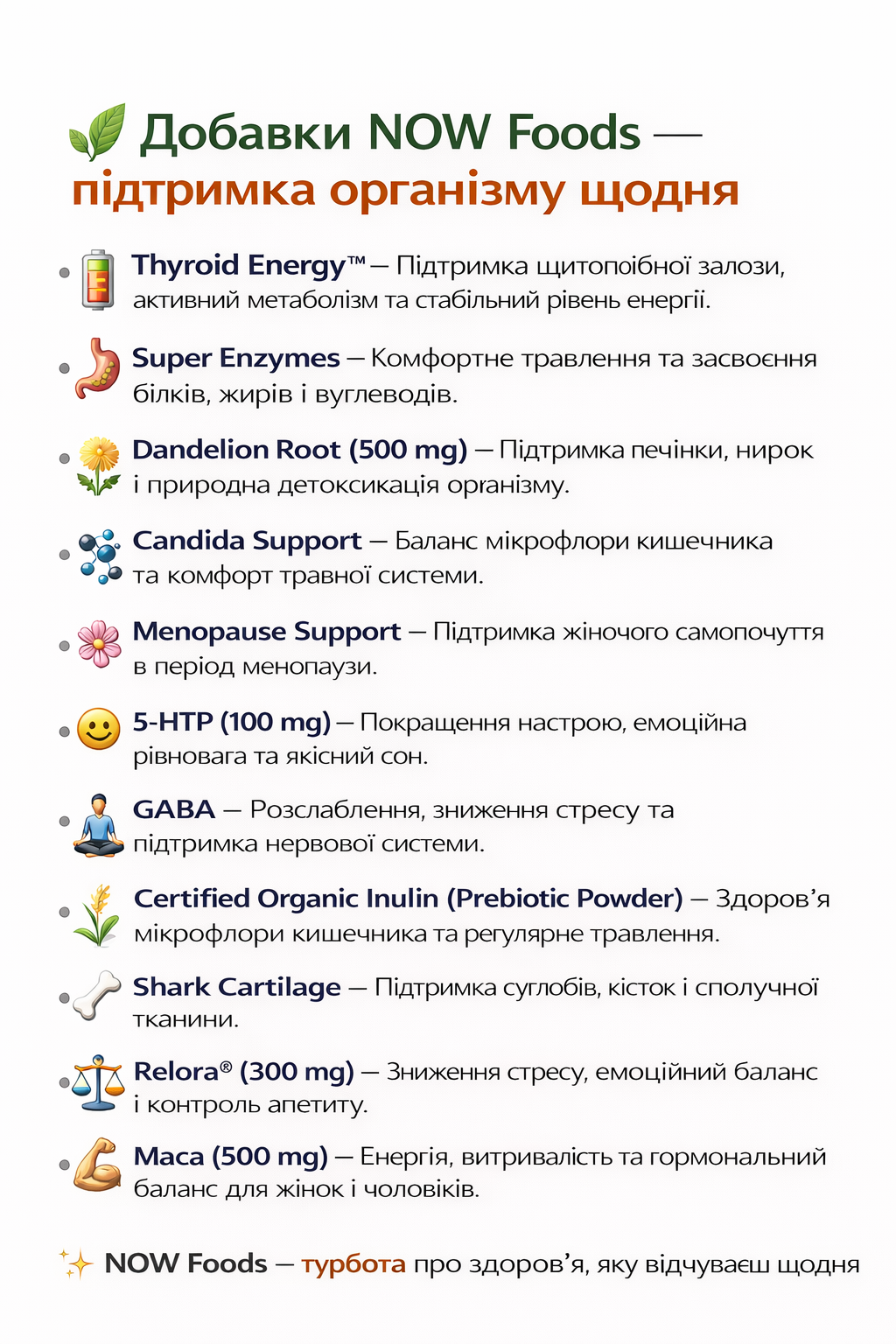 NOW Foods — широкий асортимент добавок для здоров’я, енергії та щоденного балансу організму
