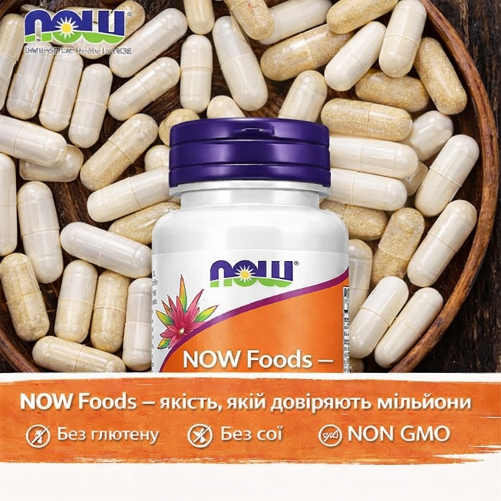 NOW Foods — відома американська компанія з більш ніж 50-річною історією, заснована у 1968 році. Бренд спеціалізується на виробництві вітамінів, мінералів і харчових добавок високої якості та й досі залишається сімейним бізнесом, орієнтованим на чесність і турботу про здоров’я людей. Компанія самостійно контролює всі етапи виробництва, використовує власні потужності та дотримується міжнародних стандартів якості GMP. Продукція NOW Foods представлена у десятках країн світу й цінується за натуральні формули, науковий підхід, стабільну якість та доступну ціну.